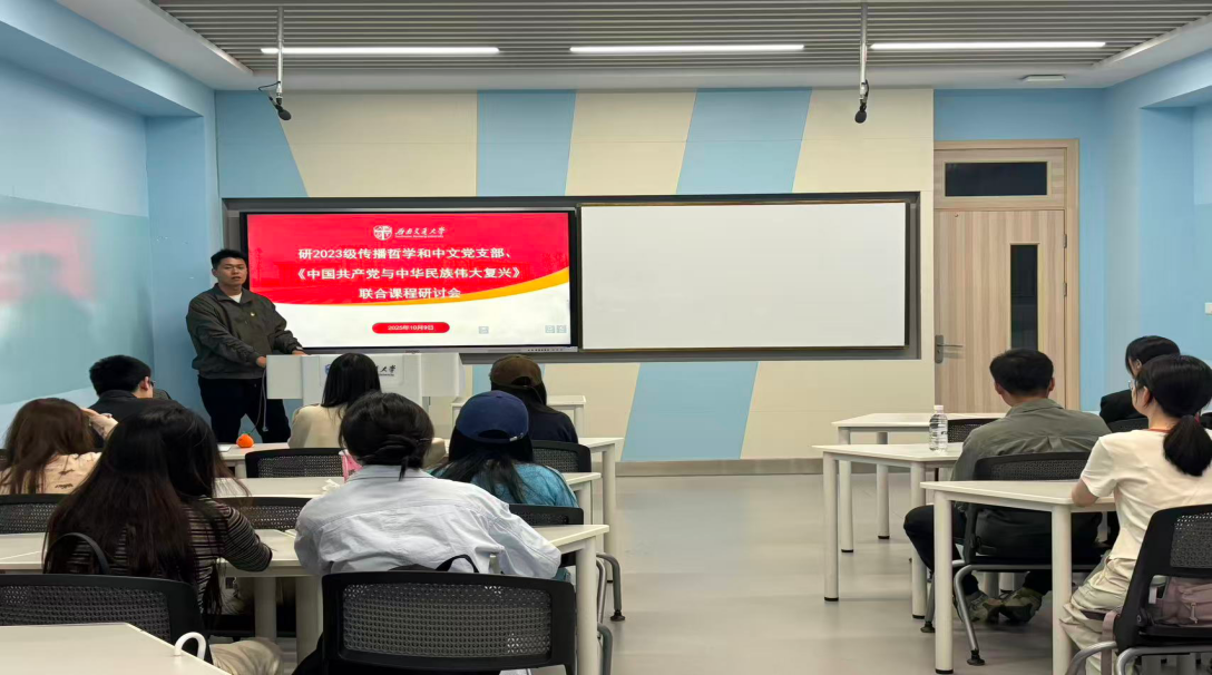 2025年10月9日下午,人文学院研究生2023级中文党支部与研究生2023级传播哲学党支部在九里校区J4221开展10月主题党日活动,集体观看爱国主义影片《八佰》。此次活动由毛艺霖同志主持,支部全体成员到场学习。