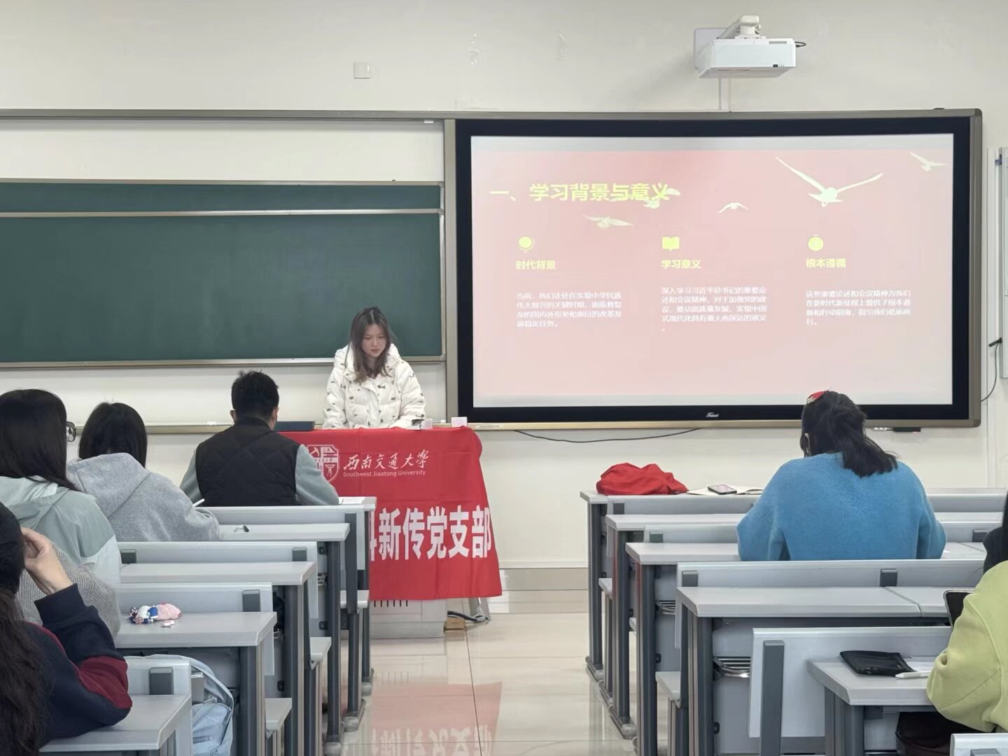 人文学院党委副书记陈曦轶同志为支部建设与党员发展提出三点意见:一是做好传帮带工作,发挥党员的先锋模范作用,形成支部内部互帮互助的良好氛围;二是注重全面发展,党员不仅要抓好学业成绩,更要积极参与各类竞赛、实践活动,锤炼综合能力,将能力转化为就业竞争力;三是立足国家发展,把个人职业选择与国家战略需求、社会发展大局紧密联系起来,在服务国家发展中实现个人价值。