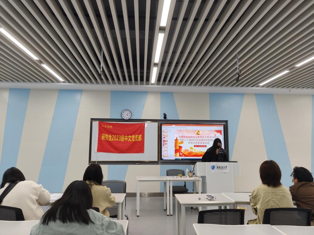 活动伊始,王沁岚同志带领全体成员开展集中理论学习,深入学习了《习近平在省部级主要领导干部学习贯彻党的二十届四中全会精神专题研讨班开班式上发表重要讲话》《习近平在二十届中央纪委五次全会上发表的重要讲话》等重要文件,引导党员同志筑牢思想根基,将理论学习与学业研究、成长发展相结合。