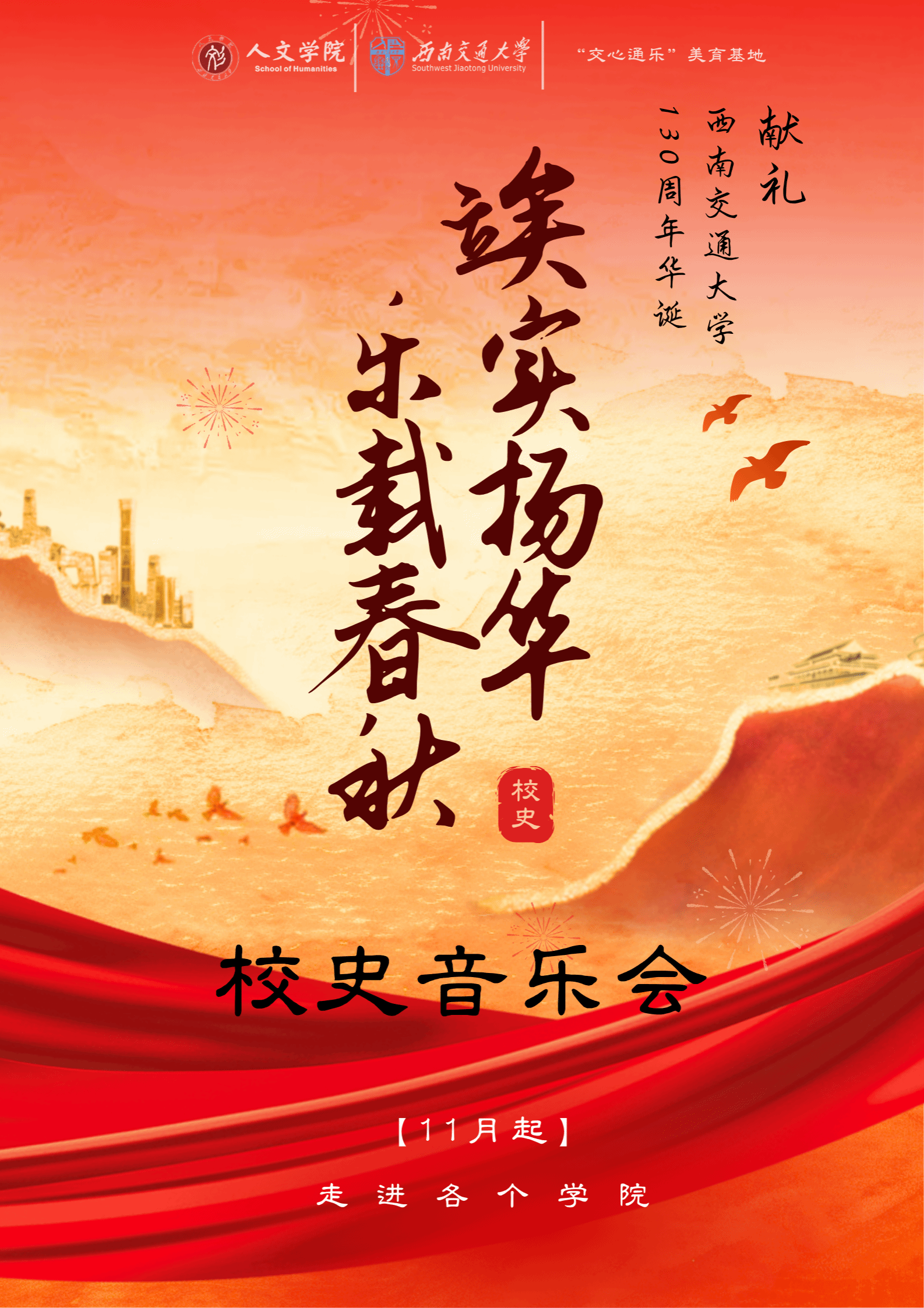 为深入推进美育与思政融合实践教学,向西南交通大学130周年华诞致以诚挚献礼,2025年,人文学院“交心通乐”美育基地以音乐为笔,以校史为卷,策划打造“竢实扬华·乐载春秋”西南交通大学校史展演音乐会“走进学院”系列活动。本次活动以音乐为载体,串联校史脉络,旨在通过沉浸式视听体验,让全校师生重温学校百余年发展历程,传承“竢实扬华”精神。