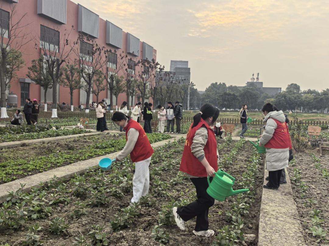 为进一步深化劳动教育实践内涵,引导学生在躬身实践中涵养劳动精神、锤炼劳动本领,人文学院依托“开心农场”劳动实践平台,于12月25日下午16时30分组织学生开展日常养护活动。在物业中心实践指导老师组织下,同学们针对近期农田杂草生长、土壤干旱等情况,开展了以浇水、除草、观察记录为核心的养护工作,在躬身劳作与细致观察中深化对劳动价值的认识。