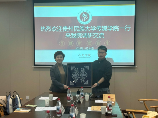 座谈会尾声,朱亚希副院长指出,当前传媒行业与高等教育的深刻变革为两院带来了相似的挑战,也为并肩探索特色化、差异化发展道路提供了前所未有的机遇,未来合作空间十分广阔。钟华院长对此深表赞同,并进一步表达了未来两院能够携手打造资源共享、优势互补、合作共赢的发展共同体的坚定信心。最后,钟华院长代表贵州民族大学传媒学院,向人文学院赠送了纪念礼物,为此次富有成效的交流画上圆满的句号。