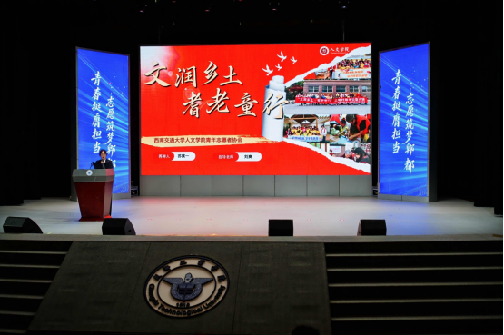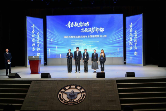 2025年12月4日下午,正值第40个国际志愿者日到来之际,以“青春挺膺担当 志愿筑梦郫都”为主题的成都市郫都区首届青年志愿服务项目大赛在成都工业学院(成都校区)长虹会堂举行。本次大赛由共青团成都市委员会指导,共青团成都市郫都区委、中共成都市郫都区委社会工作部等单位主办,旨在弘扬“奉献、友爱、互助、进步”的志愿精神,展示青年志愿服务成果。西南交通大学人文学院青年志愿者协会在周桎宏老师和朱思颖老师的带队指导下,依托 “文润乡土,耆老童行” 土地村周末公益计划项目参赛,最终在众多优秀项目中脱颖而出,荣获铜奖。