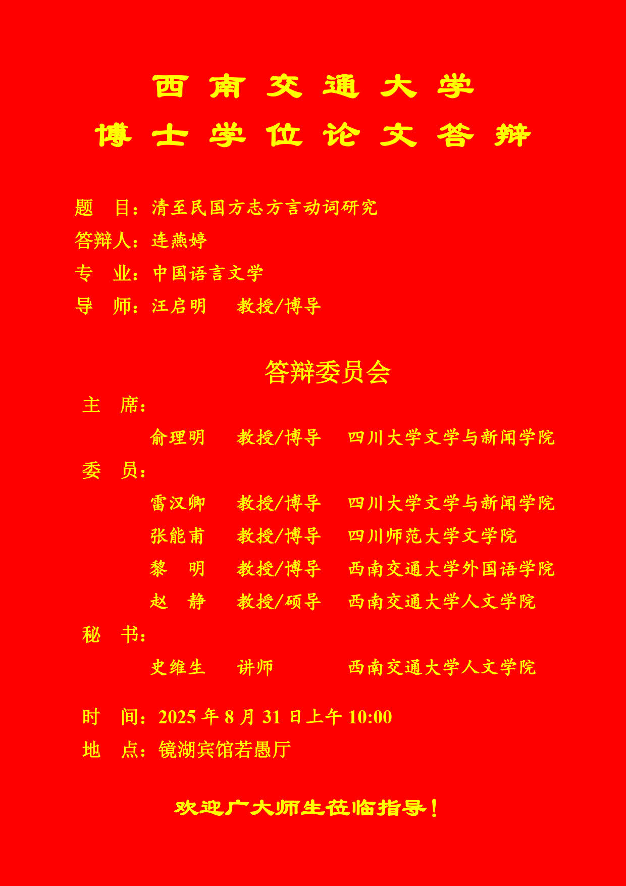 【博士答辩】人文学院博士研究生学位论文答辩海报