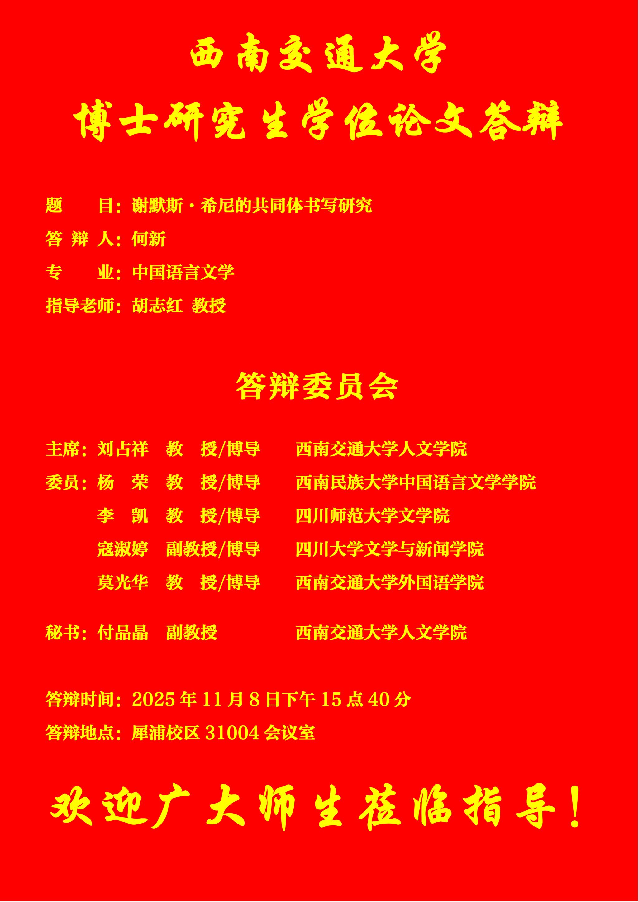 【博士答辩】人文学院博士研究生学位论文答辩海报
