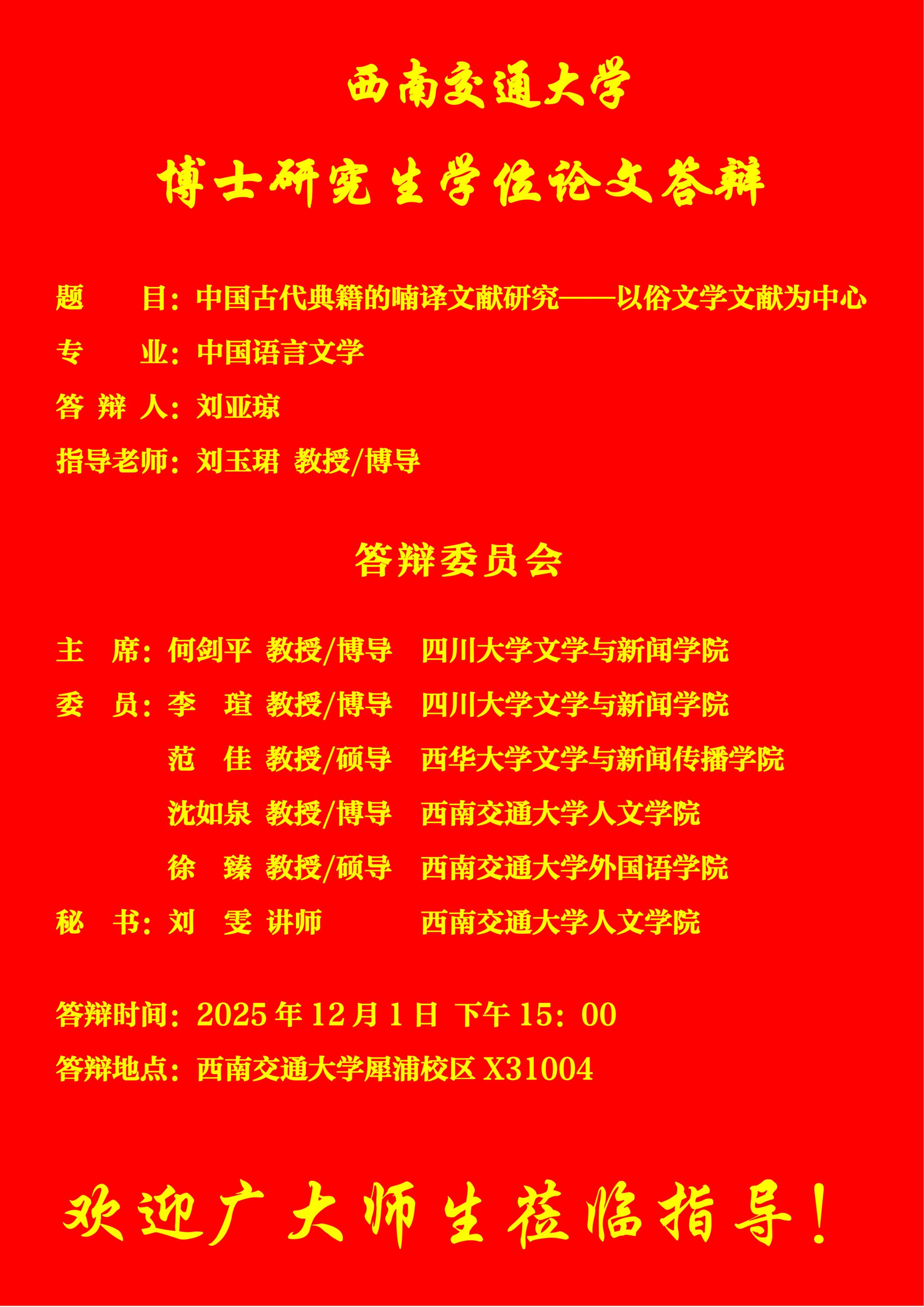 【博士答辩】人文学院博士研究生学位论文答辩海报