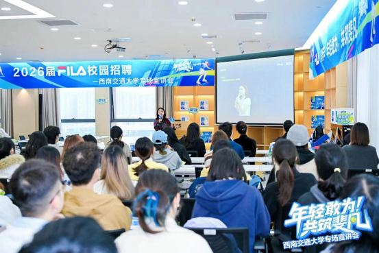 【专场招聘会】“斐凡”之旅,自此启程2025年10月23日下午,FILA 2026届校园招聘西南交通大学专场宣讲会在西南交通大学犀浦校区人文学院报告厅X31022顺利召开。本次宣讲会吸引了来自各年级的近百名学生参与,现场座无虚席。人文学院党委书记罗妍妍、团委书记刘爽、FILA西区人力资源部经理王胜男出席活动,与同学们共同聆听品牌宣讲,展望职业未来。